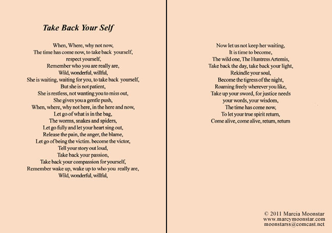book of poems "Take Back Your Self." The poems in this